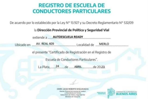NORMATIVAS Normativas e Info de Interés Certificaciones Nuestros Vehículos Autos doble comando Colectivos Normativas Ley de Tránsito Leer más Manual del Conductor 2023 Descargar Manual del Conductor Descargar Ley de Alcohol 0 Leer más Trámites Turnos Click para Iniciar Curso Seg. Vial Leer más Dec. Jurada Leer más Imp. Boletas Leer más Antecedentes Penales Leer más Permiso Internacional Leer más Exámenes Simulador de Examen Simular Examen Teórico Simular Señales de Tránsito Leer más